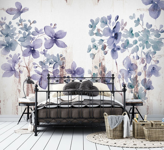 Lavender Jacaranda Art Watercolor Purple Wallpaper Mural,Self-Adhesive Peel And Stick 3D Wall Paper,Bedroom Designer Wall Decor
