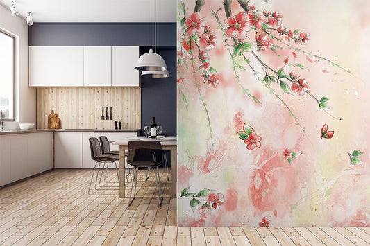 Dutch Flowers Art Watercolor Pink Wallpaper Mural,Self-Adhesive Peel And Stick 3D Wall Mural,Designer Bedroom Wall Decor