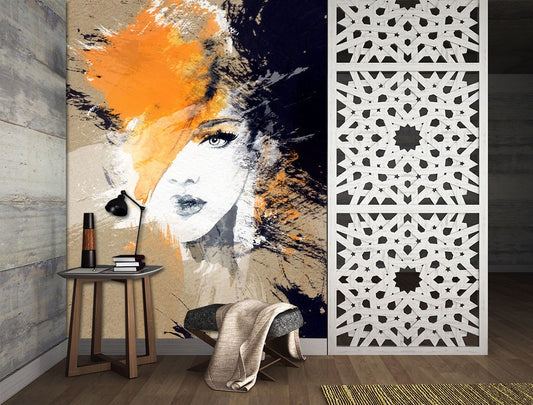 Face Art Watercolor Black Wallpaper Mural,Self-Adhesive Peel And Stick 3D Wall Paper,Removable Australian Company Wall Decor