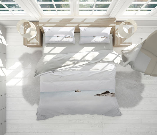 Sea Rock Duvet Cover Set W Pillow Cover, White Art Watercolor 3D Quilt Cover, Single Double Queen King Size Doona Cover