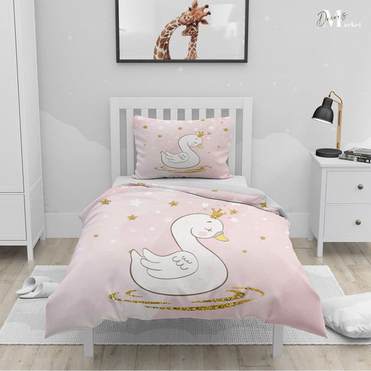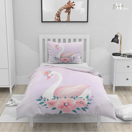 Swan Princess Duvet Cover Set w Pillow Cover, Pink Art Watercolor 3D Quilt Cover, Single Double Queen King Size Doona Cover