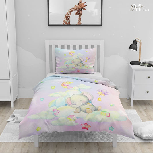 Elephant On Clouds Duvet Cover Set w Pillow Cover, Dark Art Watercolor 3D Quilt Cover, Single Double Queen King Size Doona Cover