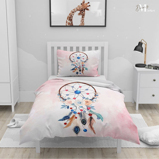 Dream Catcher Duvet Cover Set w Pillow Cover, Pink Art Watercolor 3D Quilt Cover, Single Double Queen King Size Doona Cover