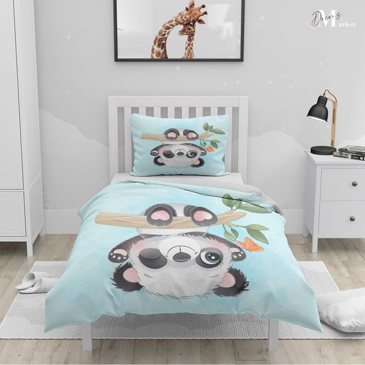 Baby Panda Nursery Duvet Cover Set w Pillow Cover, Green Art Watercolor 3D Quilt Cover, Single Double Queen King Size Doona Cover