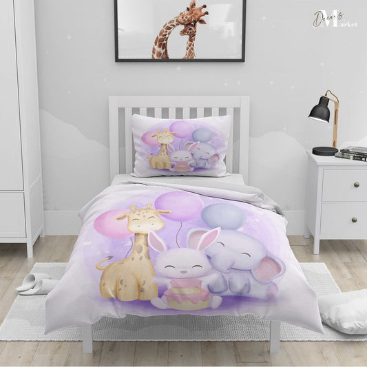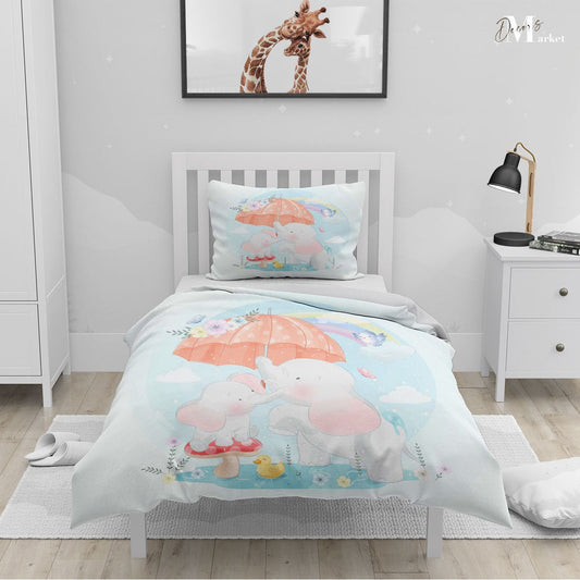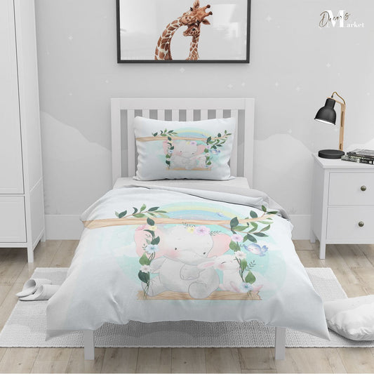 Baby Elephant Rabbit Duvet Cover Set w Pillow Cover, Multicolour Art Watercolor 3D Quilt Cover, Single Double Queen King Size Doona Cover