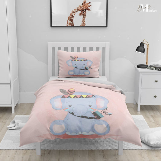 Elephant Chief Duvet Cover Set w Pillow Cover, Pink Art Watercolor 3D Quilt Cover, Single Double Queen King Size Doona Cover