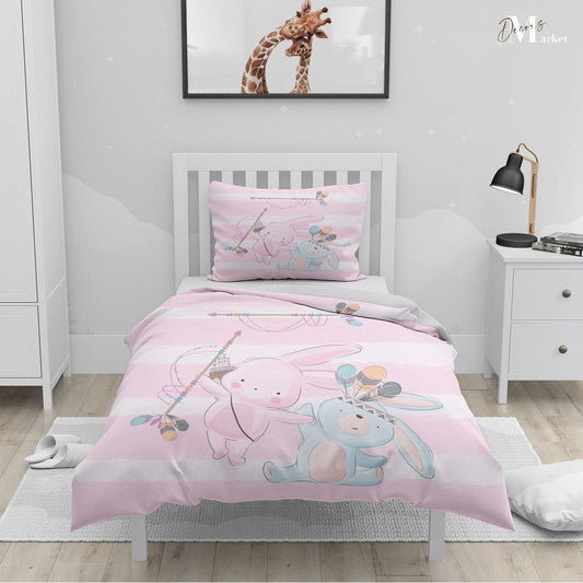 Rabbit Chief Duvet Cover Set w Pillow Cover, Pink Art Watercolor 3D Quilt Cover, Single Double Queen King Size Doona Cover