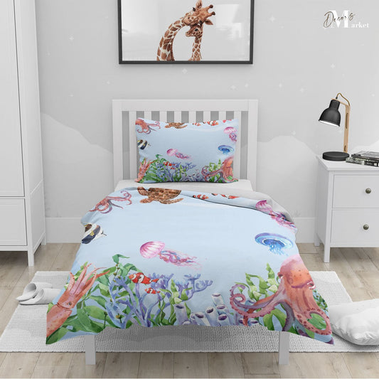 Sealife Aquarium Duvet Cover Set w Pillow Cover, Multicolour Art Watercolor 3D Quilt Cover, Single Double Queen King Size Doona Cover
