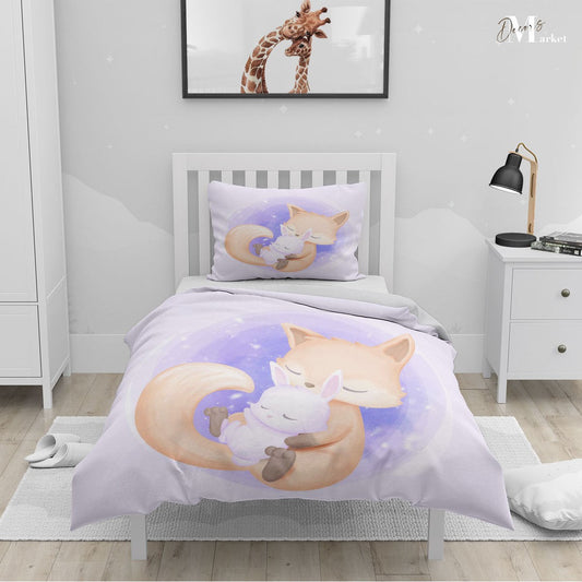 Napping Baby Fox Duvet Cover Set w Pillow Cover, Pink Art Watercolor 3D Quilt Cover, Single Double Queen King Size Doona Cover