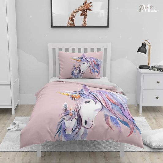 Baby Mama Unicorn Duvet Cover Set w Pillow Cover, Pink Art Watercolor 3D Quilt Cover, Single Double Queen King Size Doona Cover