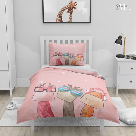Giraffe With Style Duvet Cover Set w Pillow Cover, Pink Art Watercolor 3D Quilt Cover, Single Double Queen King Size Doona Cover