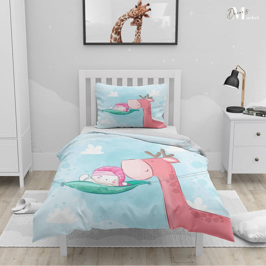 Giraffe Baby Cat Duvet Cover Set w Pillow Cover, Pink Art Watercolor 3D Quilt Cover, Single Double Queen King Size Doona Cover