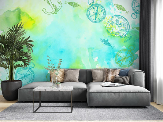 Gradient Navigation Art Watercolor Blue Wallpaper Mural