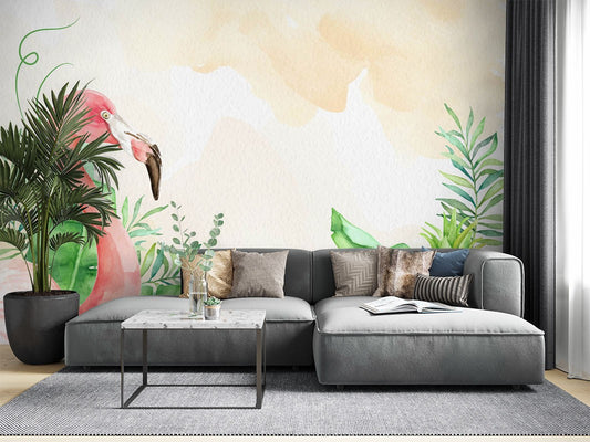 Flamingo Pineapple Art Watercolor Creamy Wallpaper Mural