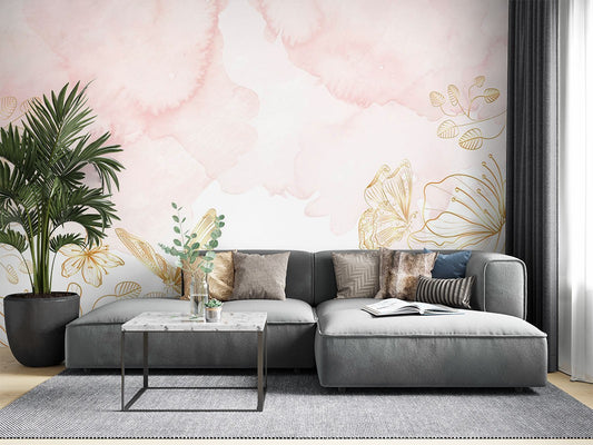 Gradient Butterfly Art Watercolor Pink Wallpaper Mural