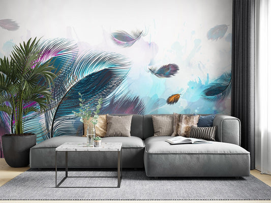 Feather Background Art Watercolor Blue Wallpaper Mural