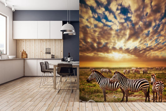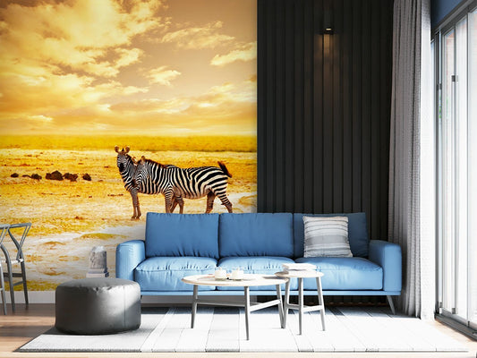 Zebras Sunset Wild Animals Bright Wallpaper Mural,Self-Adhesive Peel And Stick 3D Wall Decor,Bedroom Designer Wall Decor