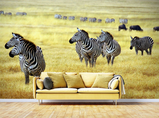 Zebra Steppe Animals Wild Animals Gold Wallpaper Mural,Self-Adhesive Peel And Stick 3D Wall Decal,Designer Bedroom Wall Decor