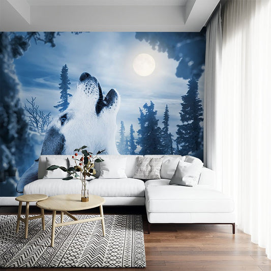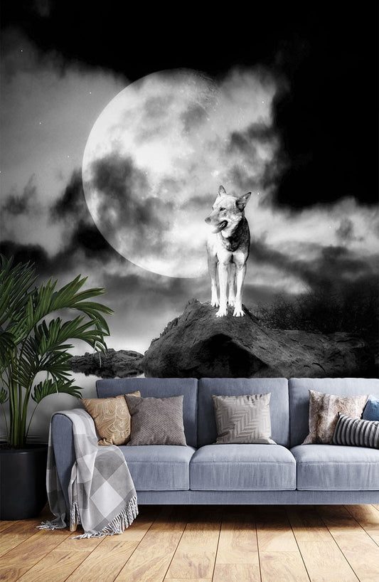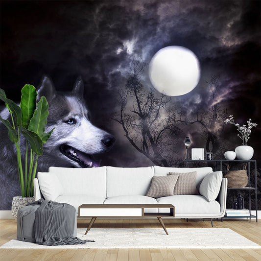 Wolf Moon Animals Wild Animals Black&White Wallpaper Mural,Self-Adhesive Peel And Stick 3D Wall Paper,Designer Bedroom Wall Decor