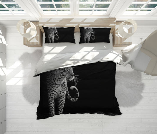Leopard Duvet Cover Set W Pillow Cover, Black And White Animals Wild Animals 3D Quilt Cover, Single Double Queen King Size Doona Cover