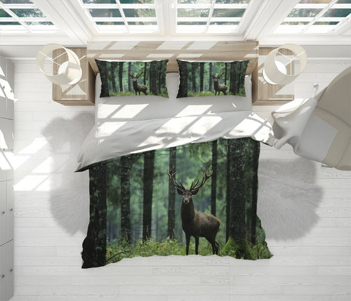 Deer Trees Duvet Cover Set W Pillow Cover, Green Animals Wild Animals 3D Quilt Cover, Single Double Queen King Size Doona Cover