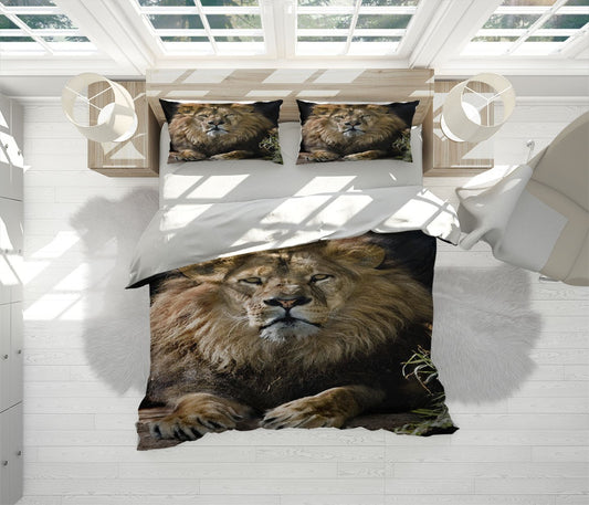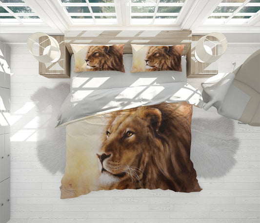 Magestic Lion Duvet Cover Set W Pillow Cover, Brown Animals Wild Animals 3D Quilt Cover, Single Double Queen King Size Doona Cover
