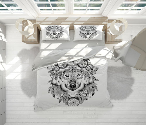 Wolf Totem Duvet Cover Set W Pillow Cover, Black And White Animals Wild Animals 3D Quilt Cover, Single Double Queen King Size Doona Cover
