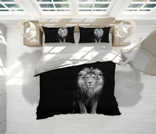 Majestic Lion Duvet Cover Set W Pillow Cover, Black And White Animals Wild Animals 3D Quilt Cover, Single Double Queen King Size Doona Cover