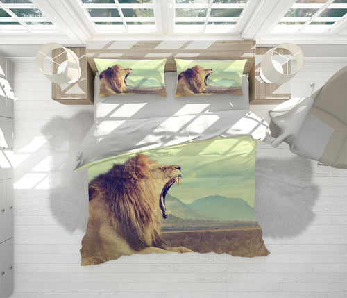 Lion Animals Wild Animals Yellow 3D Duvet Cover Set W Pillow Cover, Single Double Queen King Size, Printed Cotton Quilt Doona Cover 3 Pcs