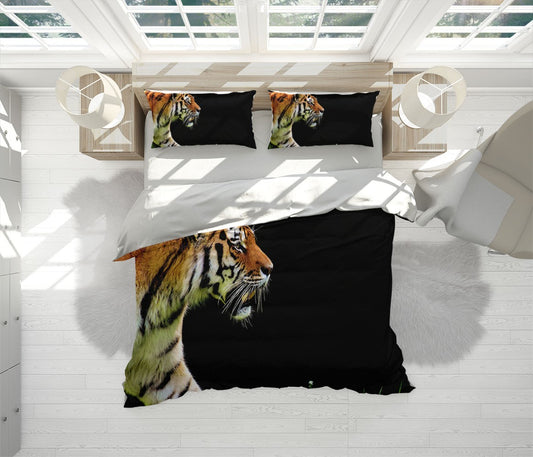 Magestic Tiger Duvet Cover Set W Pillow Cover, Dark Animals Wild Animals 3D Quilt Cover, Single Double Queen King Size Doona Cover