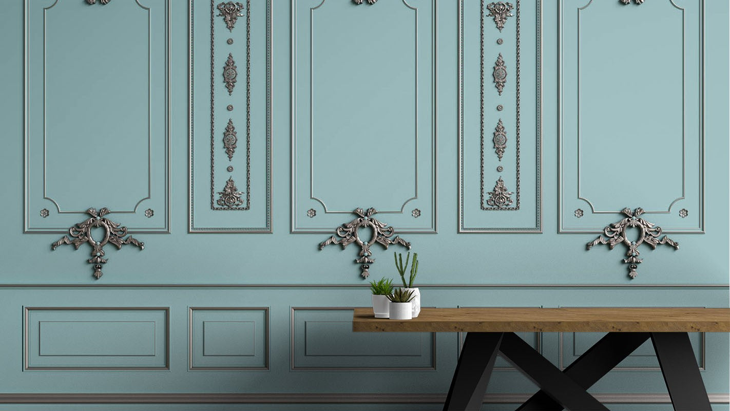 3D Mouldings Classic Wall Texture Surfaces Blue Wallpaper Mural