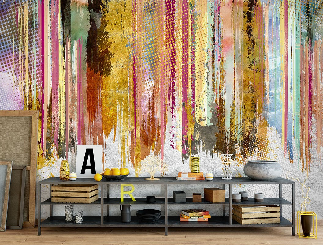 Abstract Art Multicolour Wallpaper Mural,Self-Adhesive Peel And Stick 3D Wall Art,Designer Bedroom Wall Decor