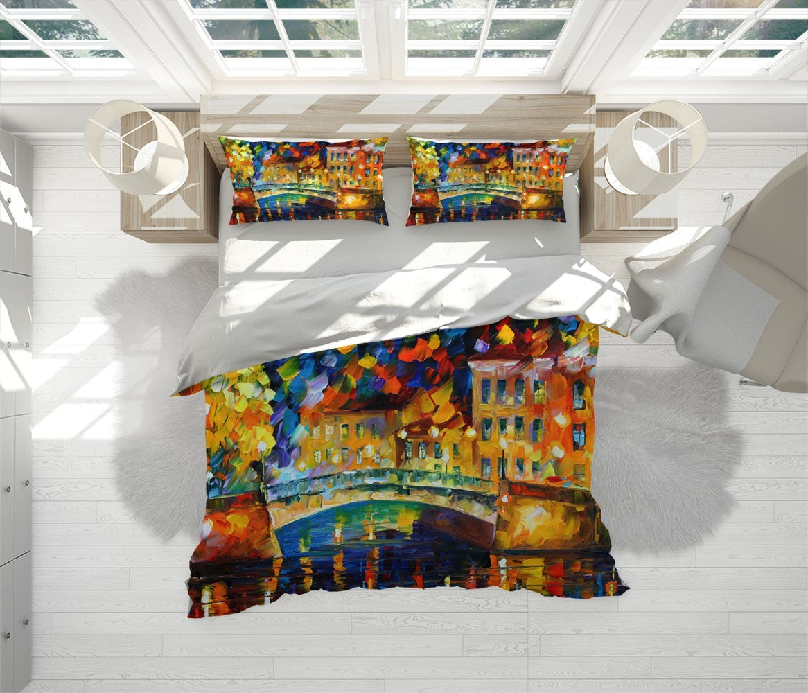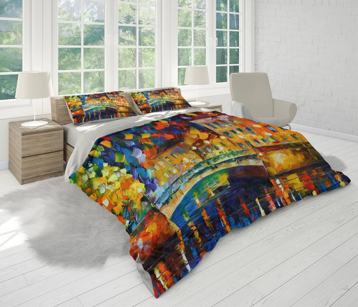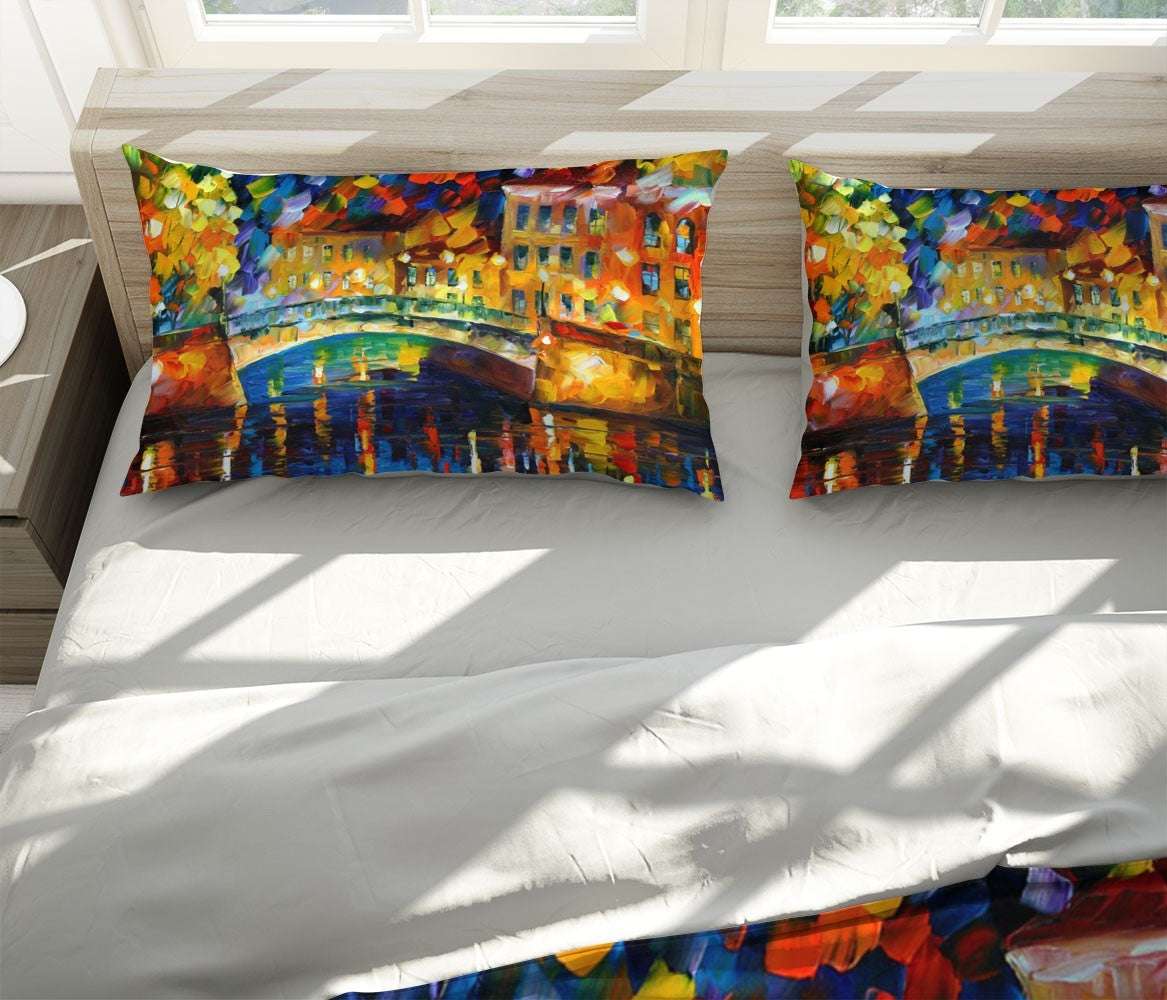 Abstract Town Duvet Cover Set W Pillow Cover, Multicolour Art Contemporary 3D Quilt Cover, Single Double Queen King Size Doona Cover