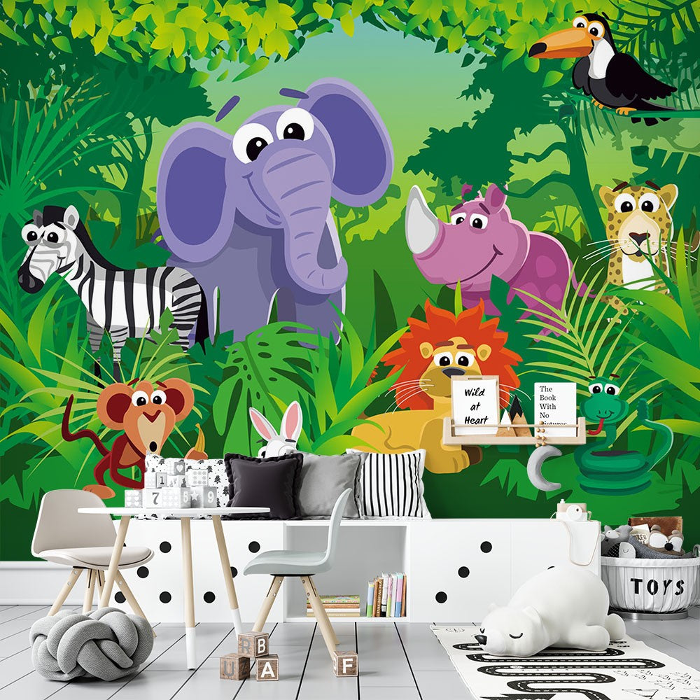 African Animals Kids Animal Green Wallpaper Mural,Self-Adhesive Peel And Stick 3D Wall Decor,Australian Company Removable Wall Decor