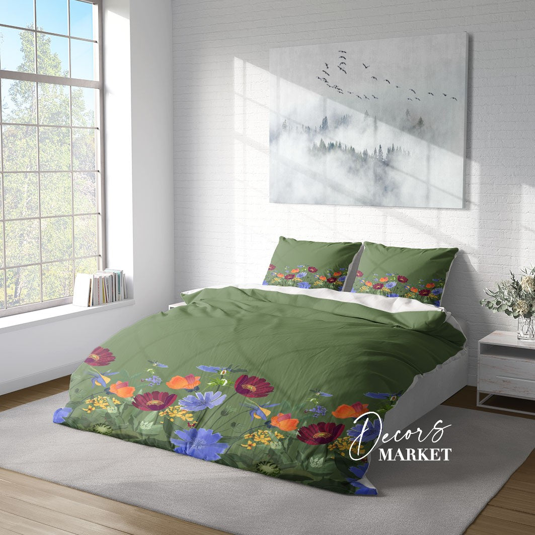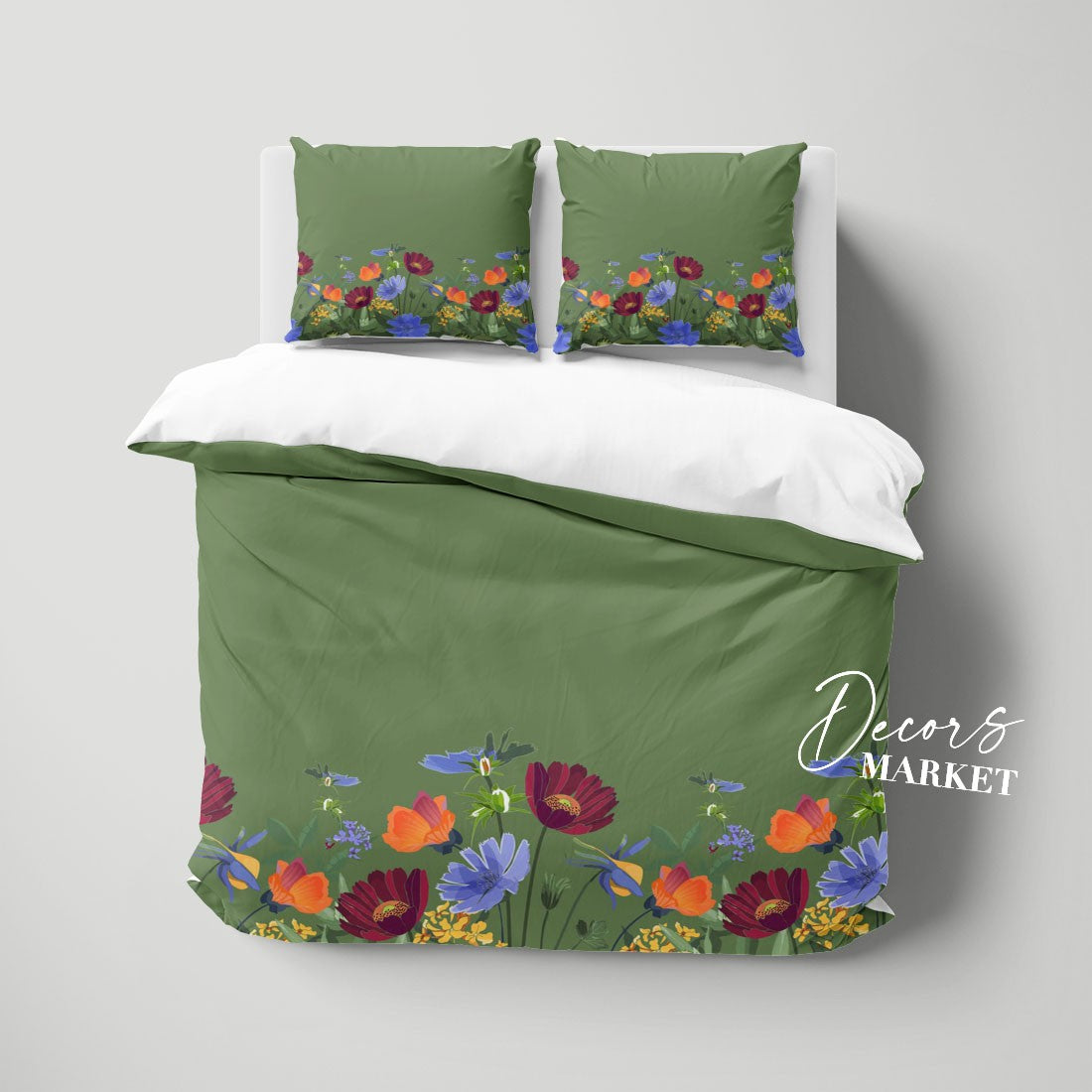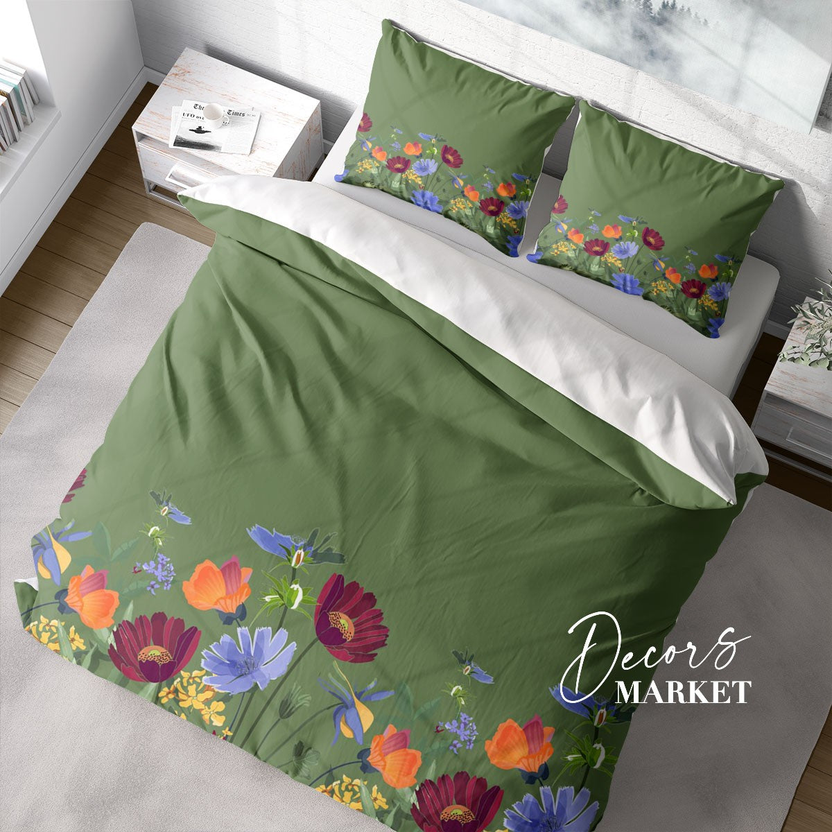 African Daisies Duvet Cover Set w Pillowcases, Green Floral Flowers 3D Quilt Cover, 3pc Single Double Queen King Size Doona Cover