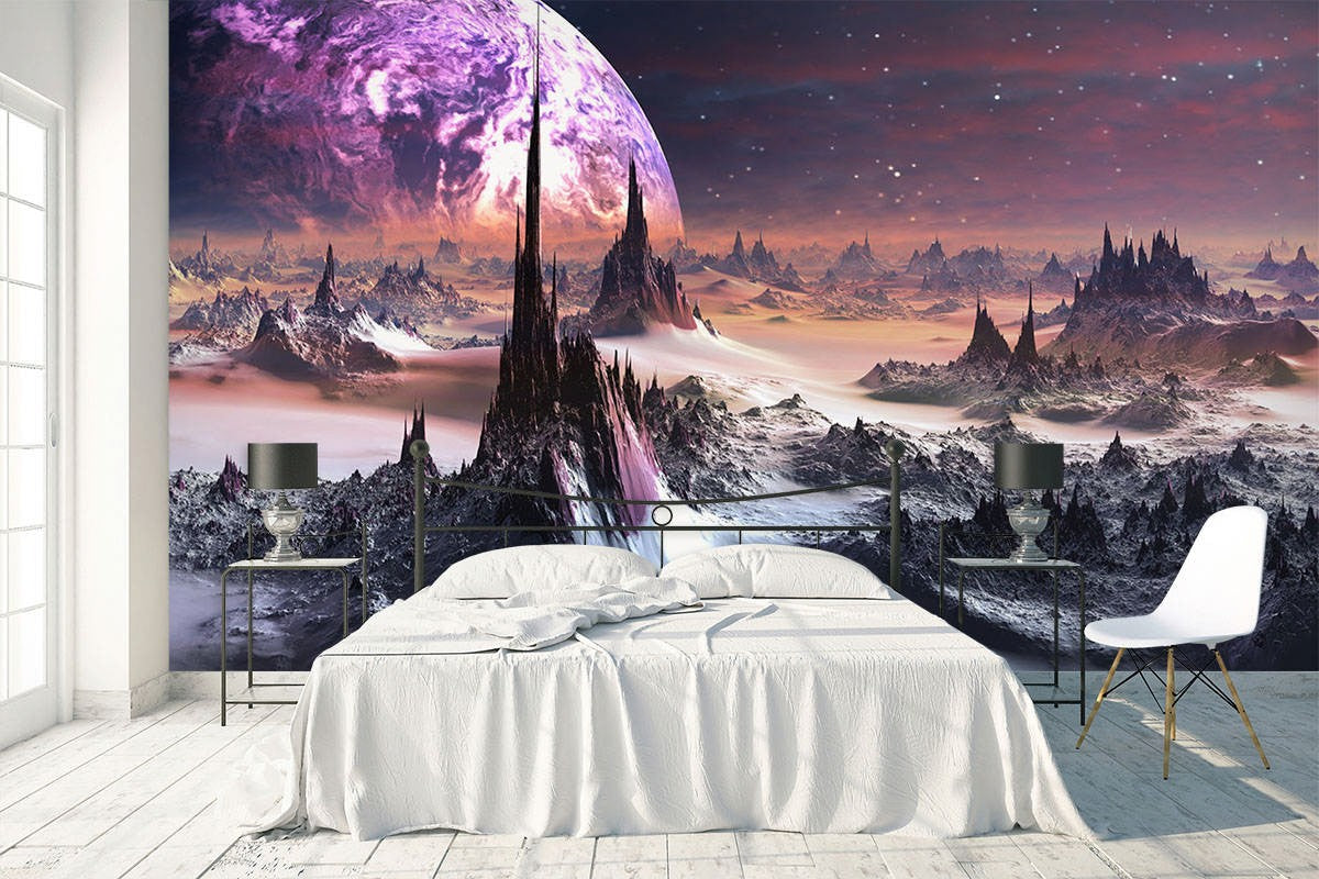Alien Universe Art Fantasy Brown Wallpaper Mural,Self-Adhesive Peel And Stick 3D Wall Decal,Designer Removable Wall Decor