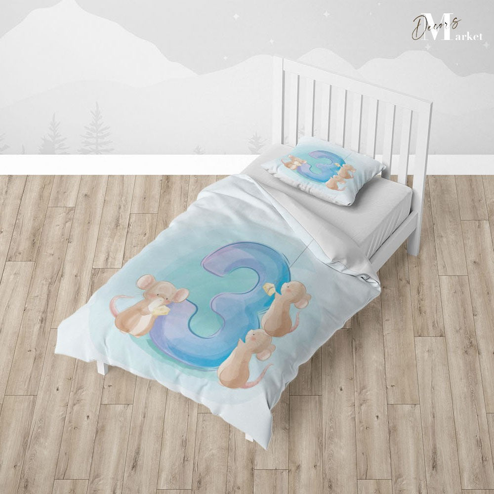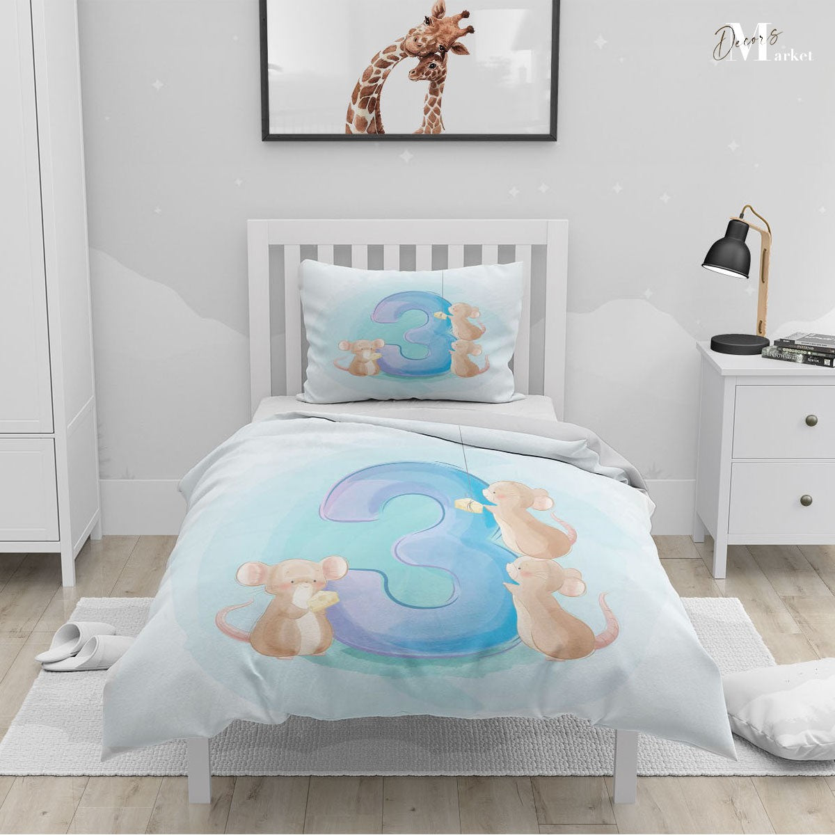 Alphabet Animal 3 Duvet Cover Set w Pillow Cover, Blue Kids Colorful 3D Quilt Cover, Single Double Queen King Size Doona Cover