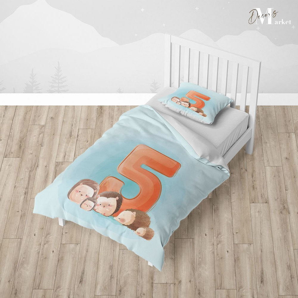 Alphabet Animal 5 Duvet Cover Set w Pillow Cover, Blue Kids Colorful 3D Quilt Cover, Single Double Queen King Size Doona Cover