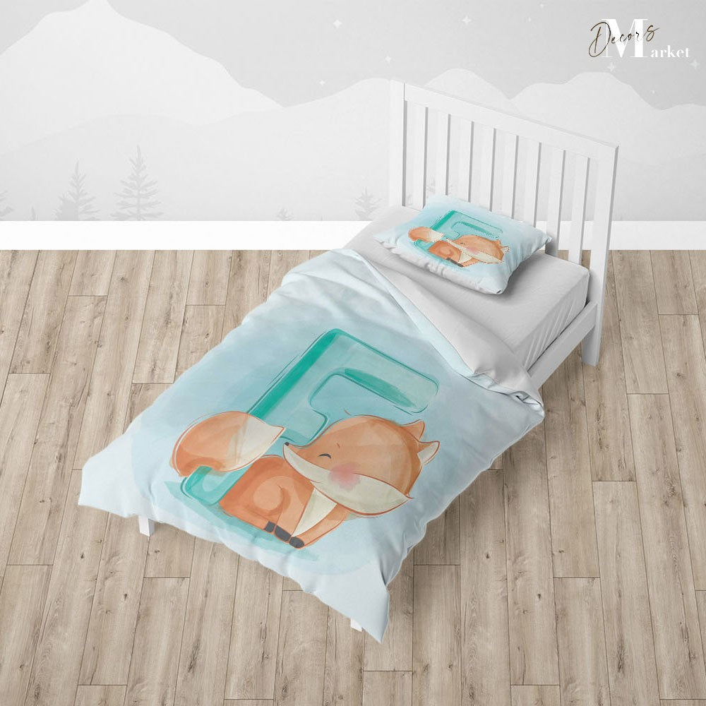 Alphabet Animal F Duvet Cover Set w Pillow Cover, Blue Kids Colorful 3D Quilt Cover, Single Double Queen King Size Doona Cover