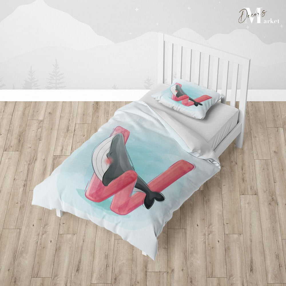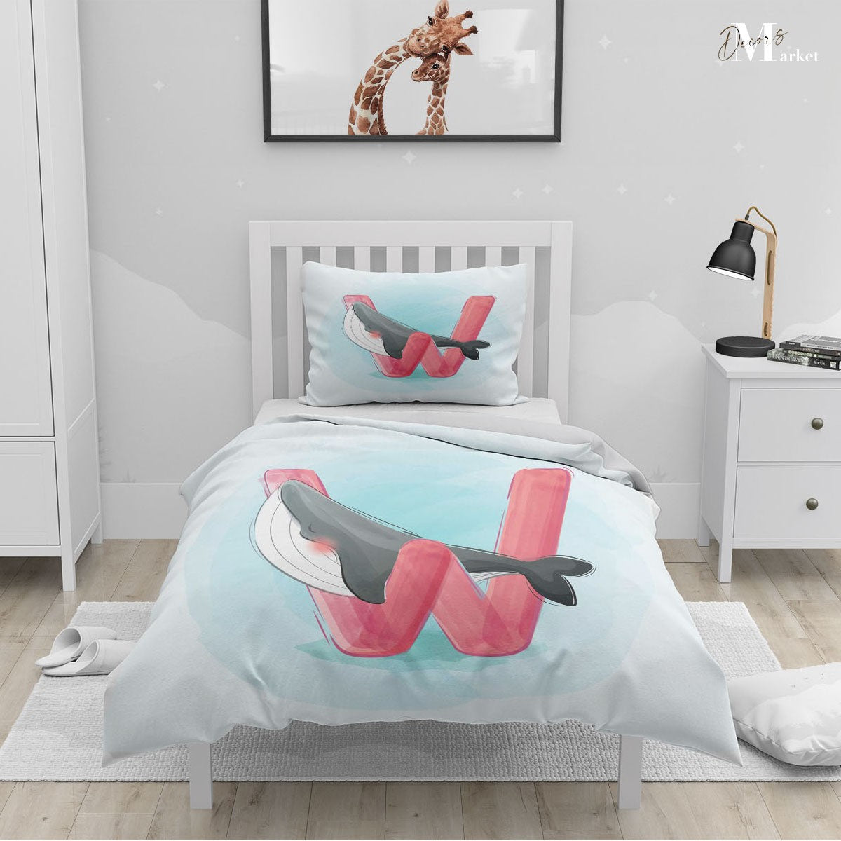 Alphabet Animal w Duvet Cover Set w Pillow Cover, Blue Kids Colorful 3D Quilt Cover, Single Double Queen King Size Doona Cover