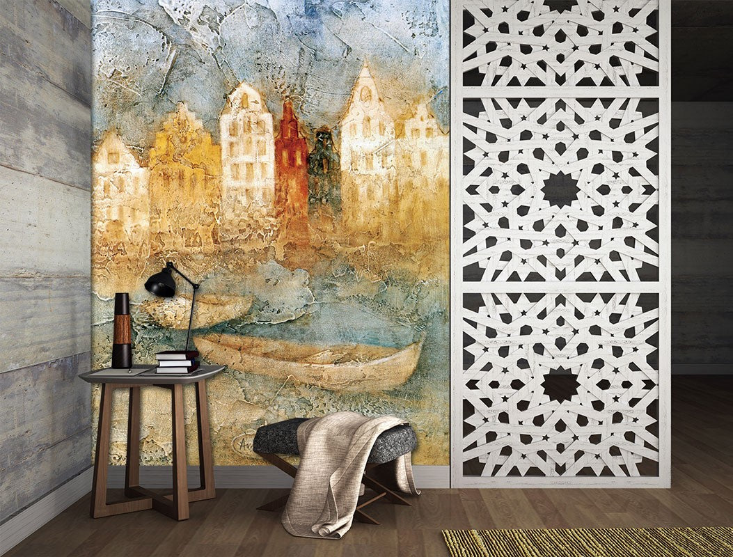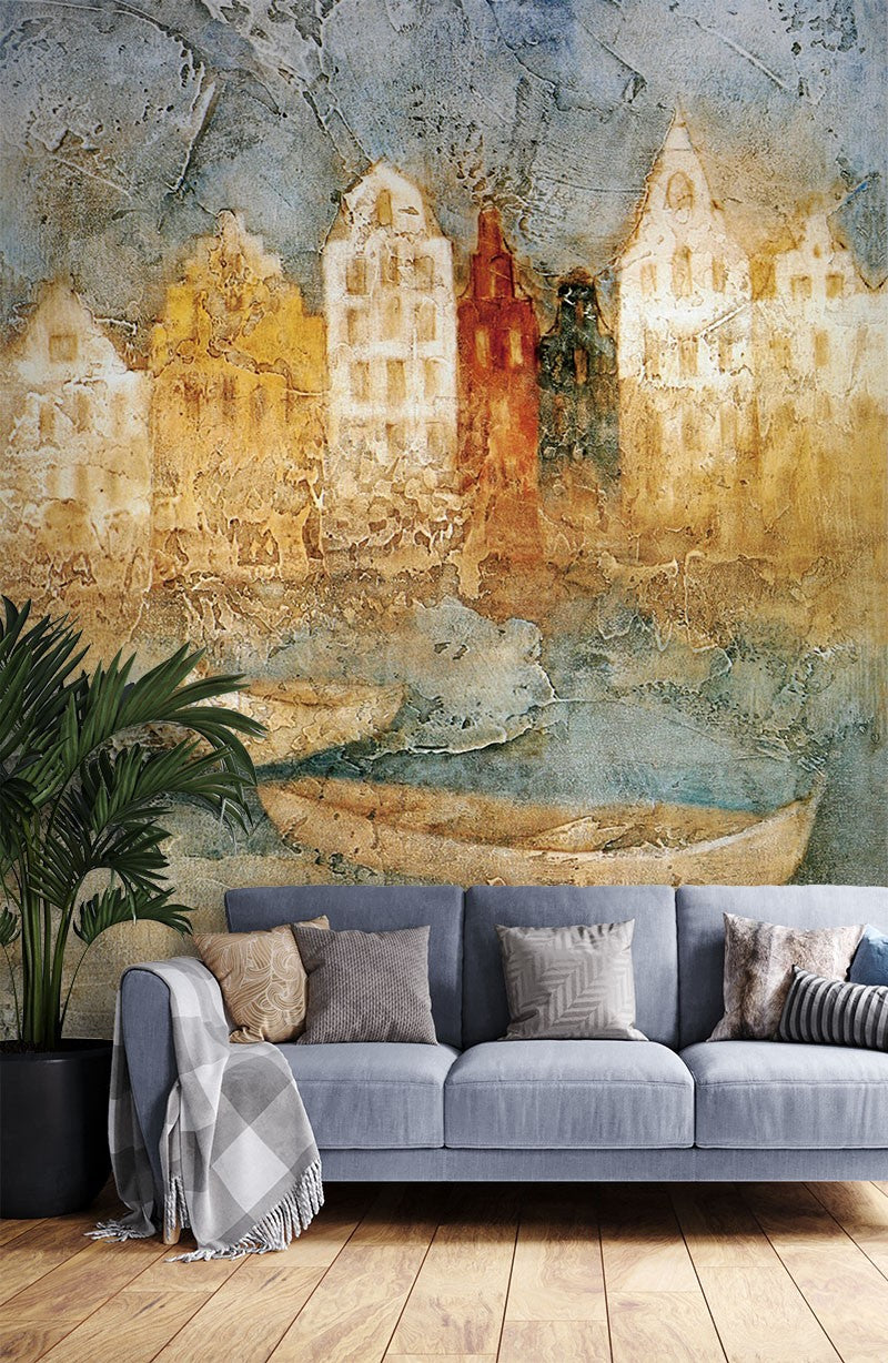 Amsterdam Landmark Art Brown Wallpaper Mural,Self-Adhesive Peel And Stick 3D Wall Mural,Designer Removable Wall Decor
