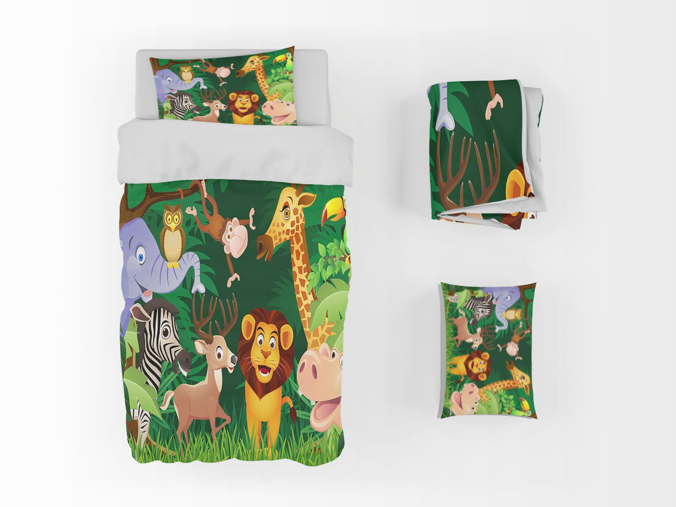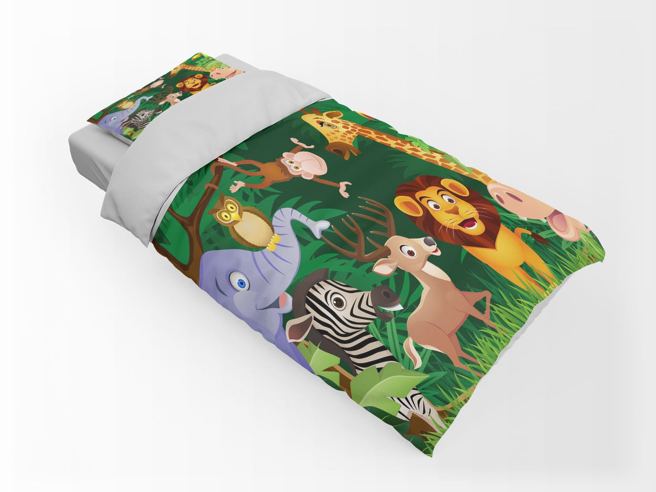 Animals Kids Animal Green 3D Duvet Cover Set W Pillow Cover, Single Double Queen King Size, Printed Cotton Quilt Doona Cover 3 Pcs