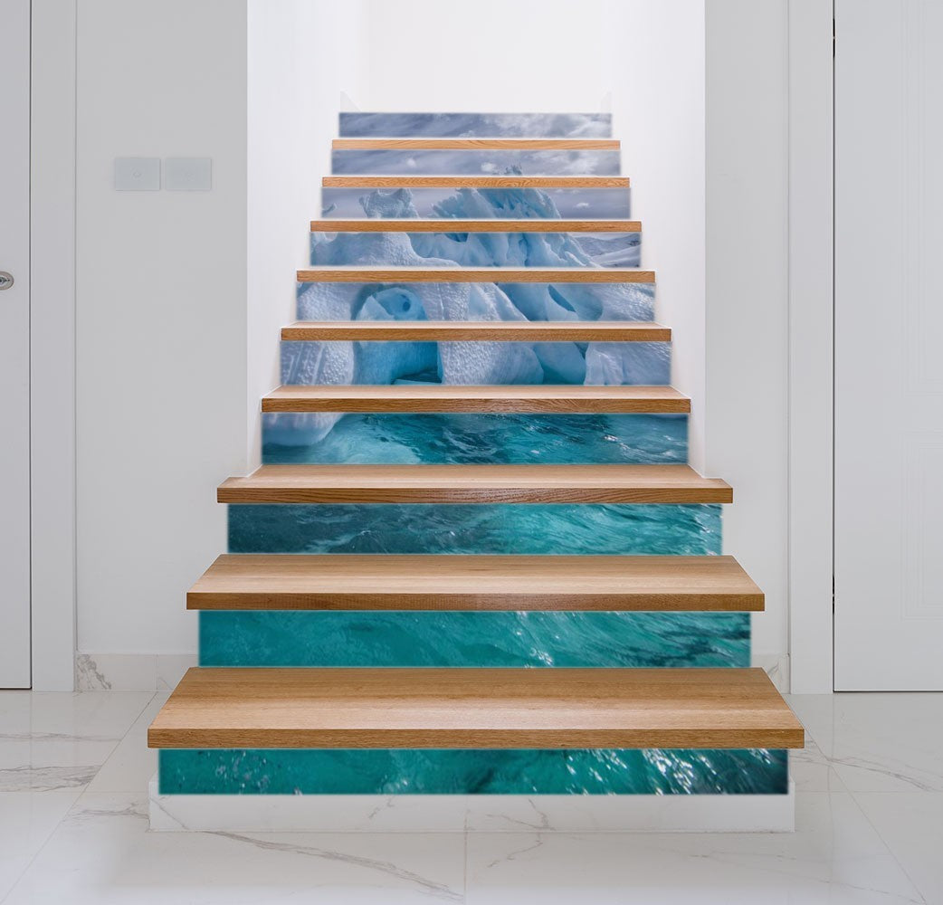 Antarctica Arctic Nature Icebergs Blue Stair Riser Decals, Waterproof Removable Staircase Decals, Vinyl Peel And Stick Stairs Decal Stickers