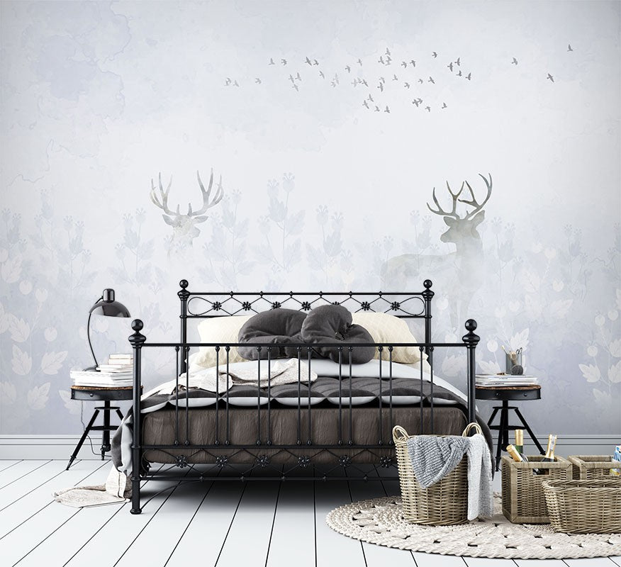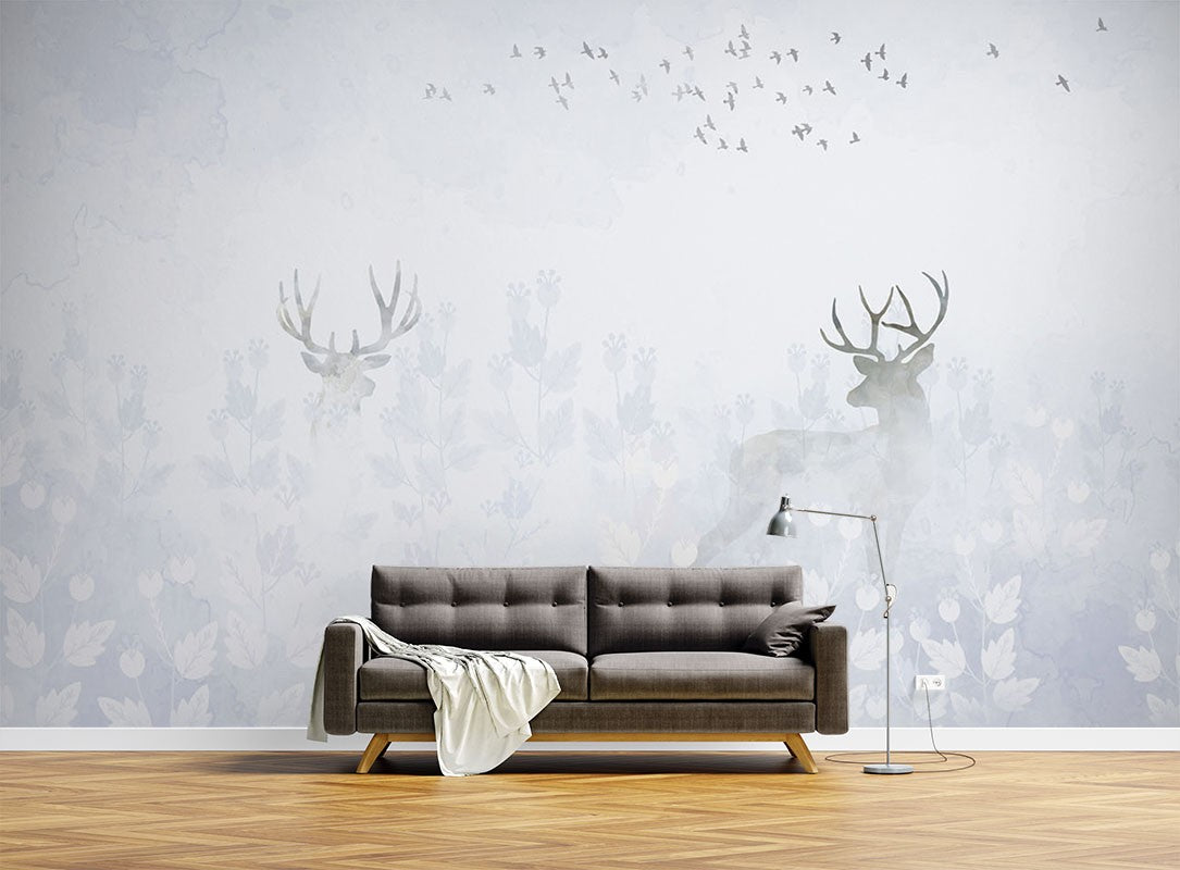 Antelope Art Classic Gray Wallpaper Mural,Self-Adhesive Peel And Stick 3D Wall Art,Bedroom Removable Wall Decor