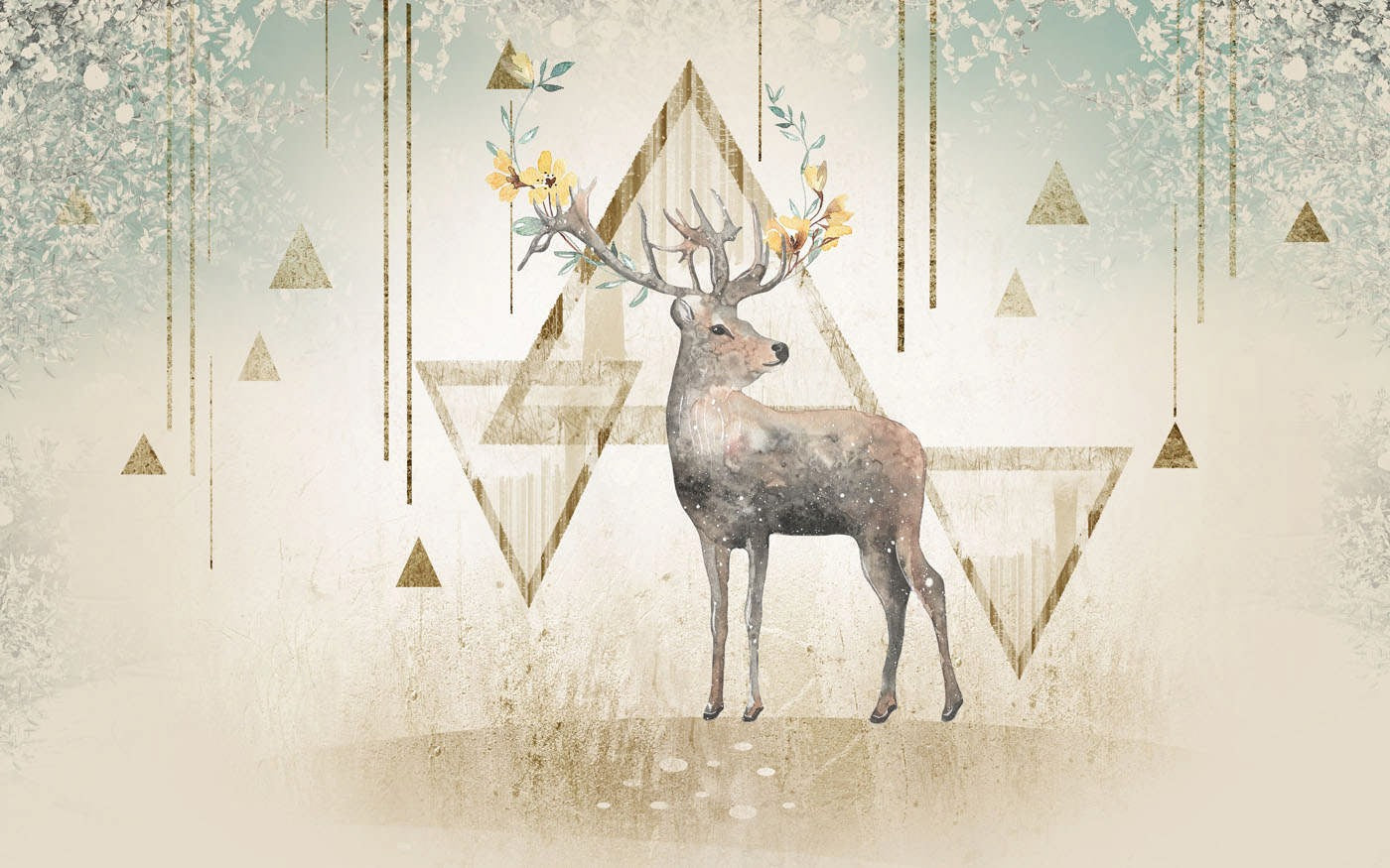 Antelope Dutch Flowers Kids Animal Gray Wallpaper Mural,Self-Adhesive Peel And Stick 3D Wall Decal,Removable Bedroom Wall Decor