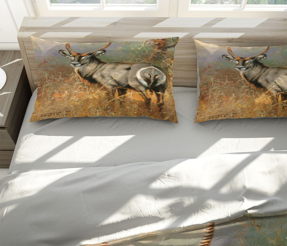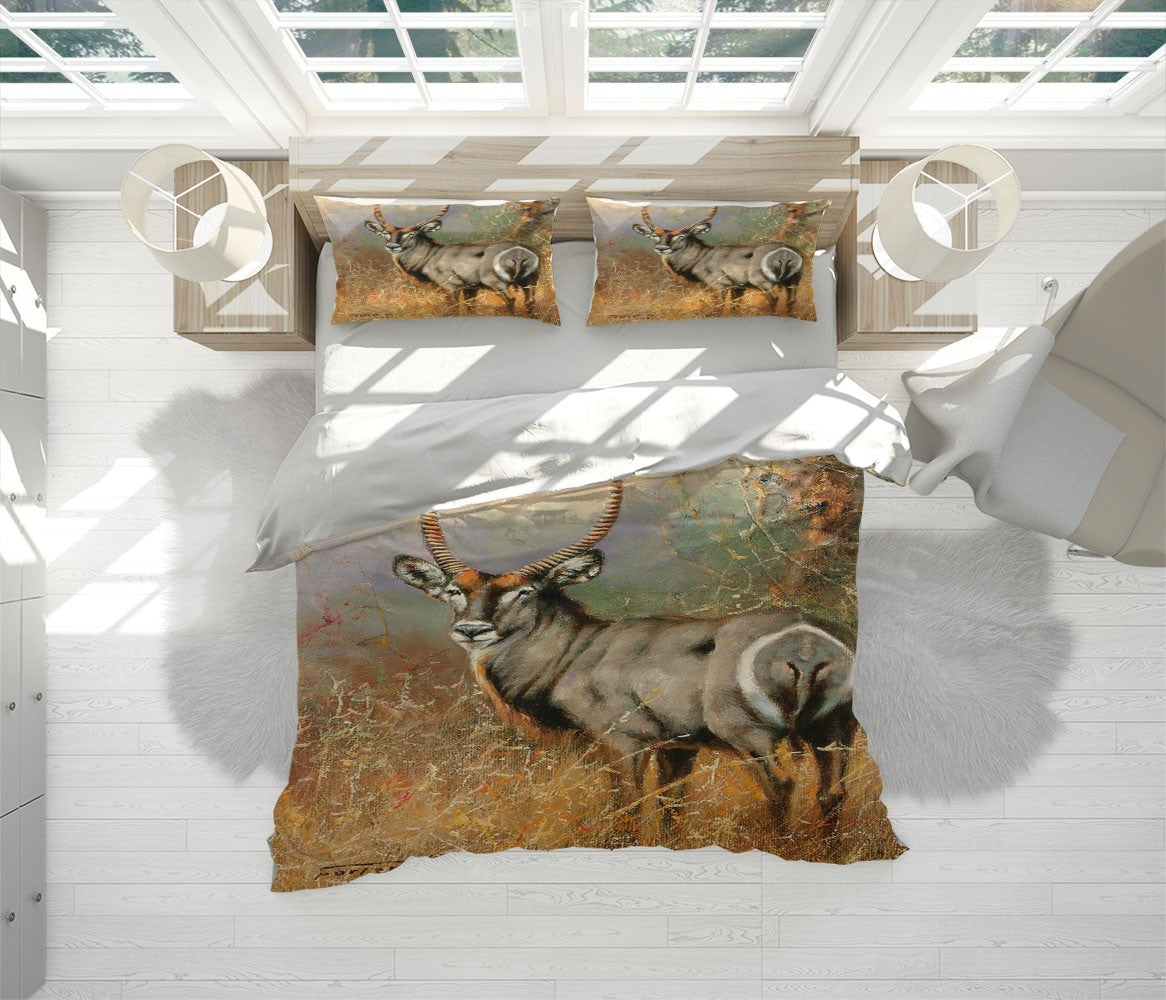 Antelope Horns Duvet Cover Set W Pillow Cover, Brown Animals Wild Animals 3D Quilt Cover, Single Double Queen King Size Doona Cover