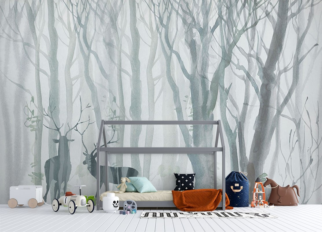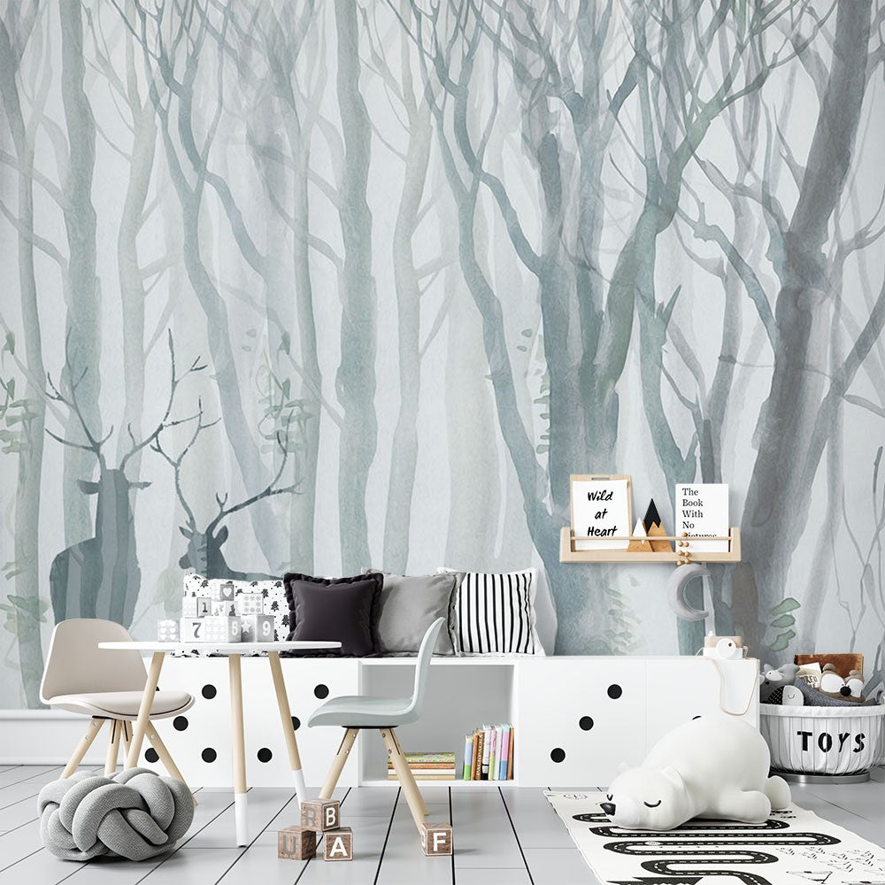 Antelope Kids Animal Gray Wallpaper Mural,Self-Adhesive Peel And Stick 3D Wall Paper,Bedroom Removable Wall Decor