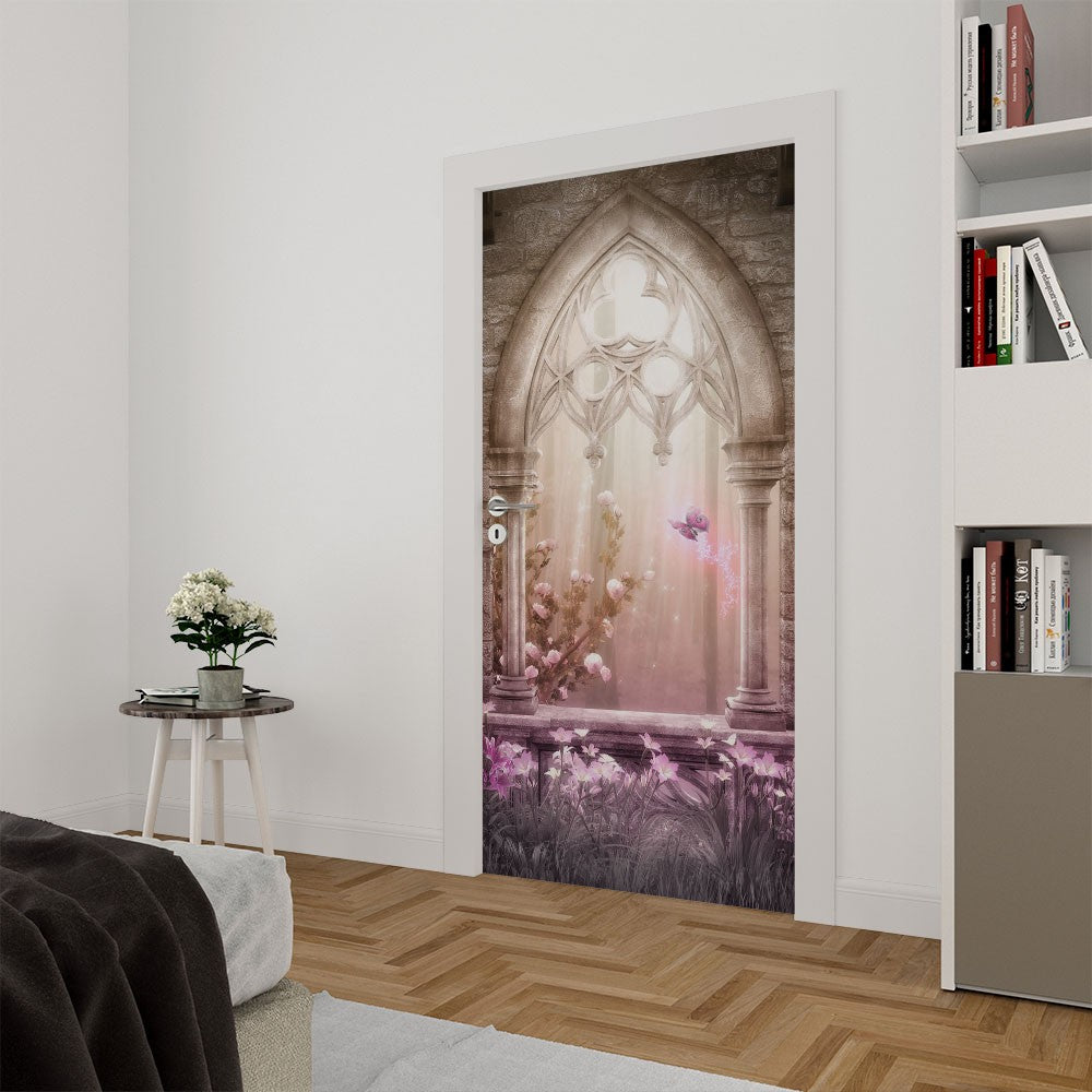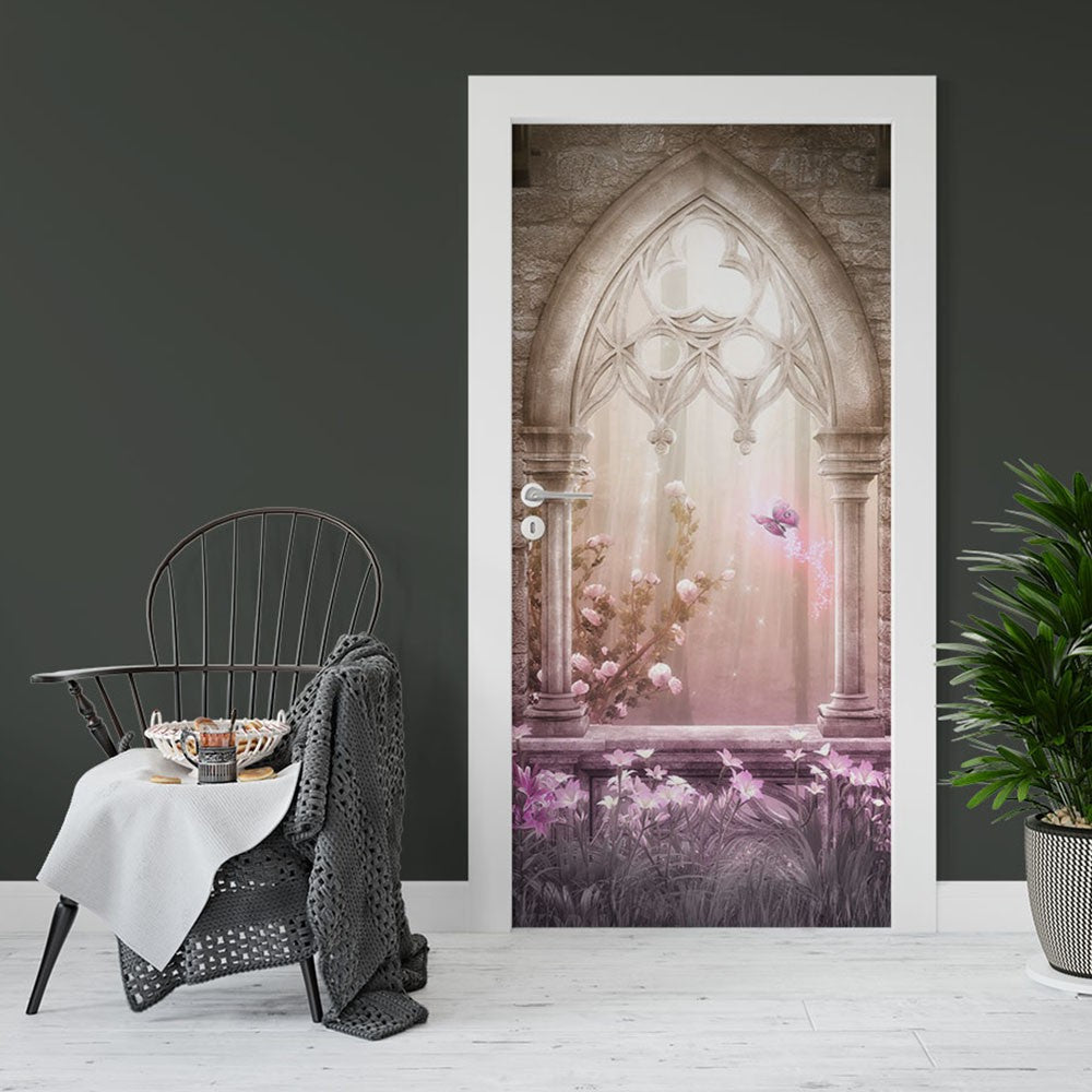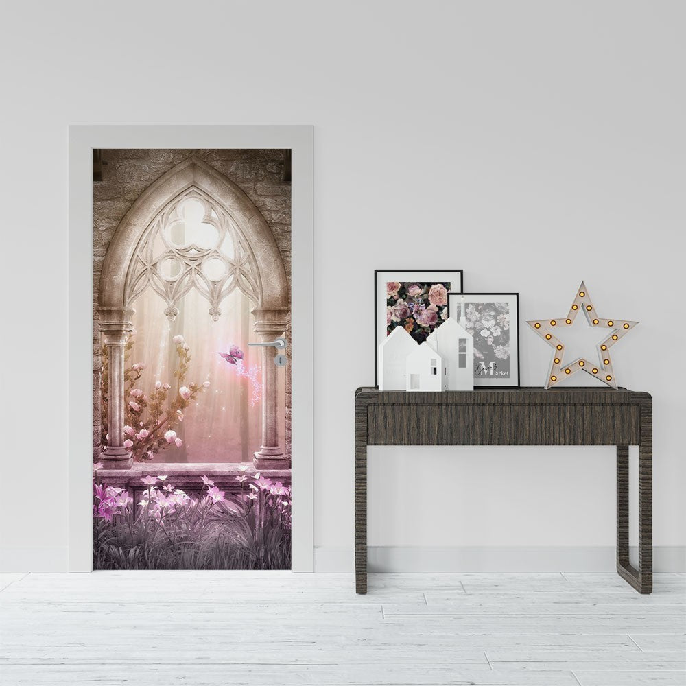 Arch Flowers Nature Space Door Wrap, Customized Mural For Door, Door Mural Sticker, Peel And Stick Door Cover, Removable Door Decal