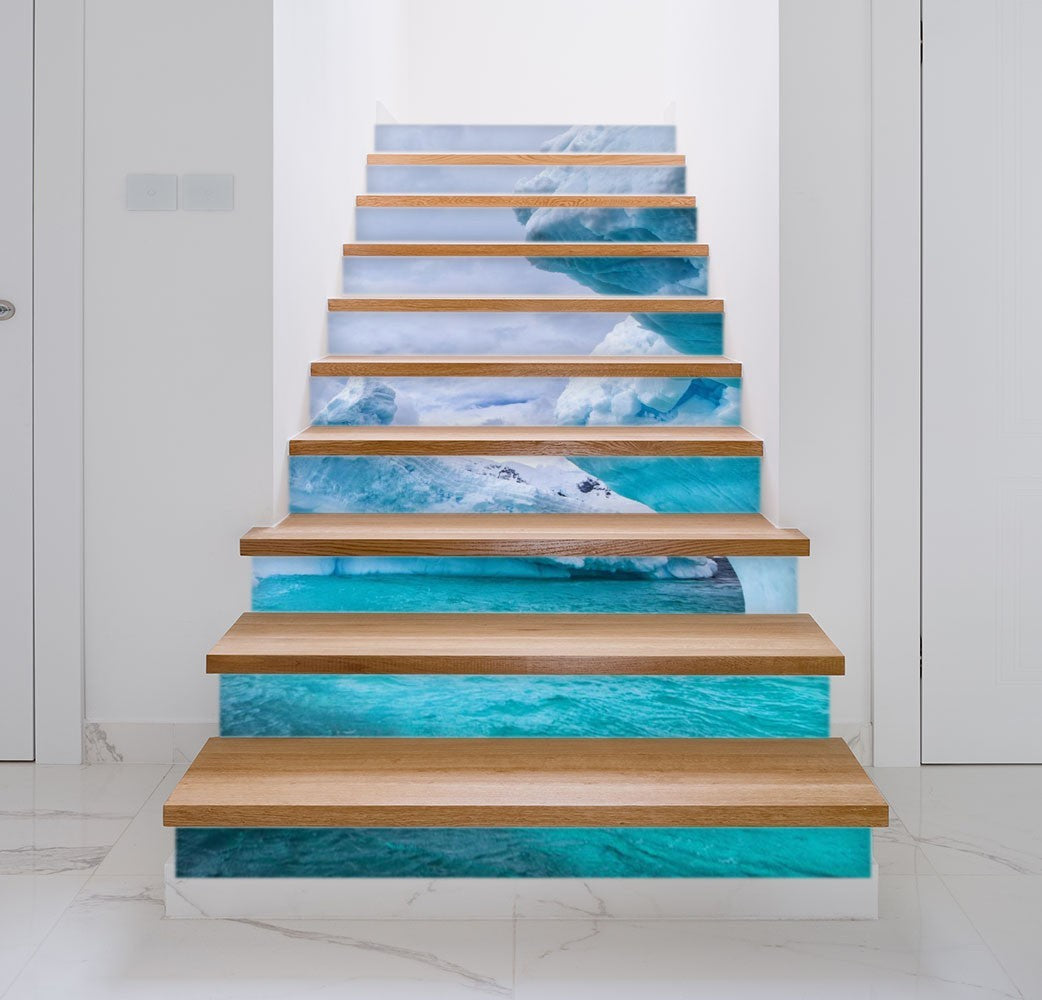 Arctic Iceberg Nature Icebergs Green Stair Riser Decals, Waterproof Removable Staircase Decals, Vinyl Peel And Stick Stairs Decal Stickers