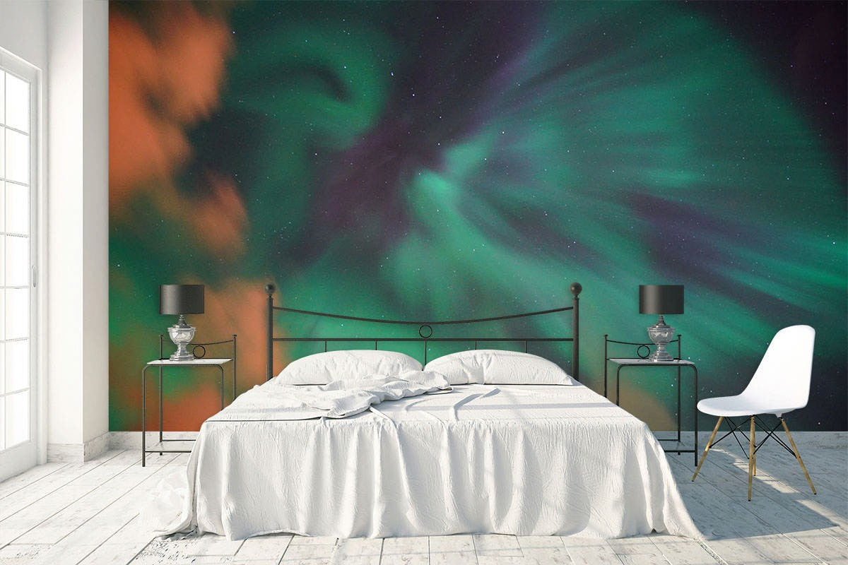 Aurora Sky Nature Phenomenon Black Wallpaper Mural,Self-Adhesive Peel And Stick 3D Wall Mural,Designer Australian Company Wall Decor